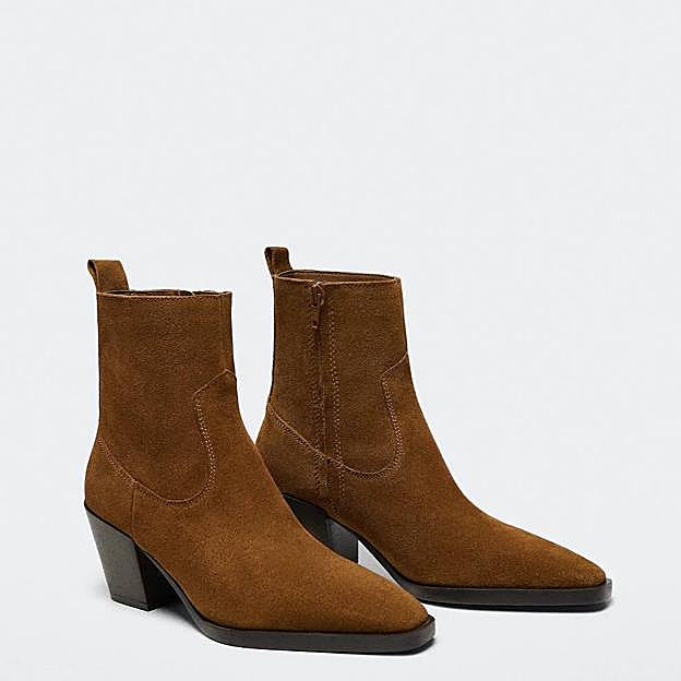 Empezamos con el calzado más versátil, perfecto para lucir en cualquier temporada (las influencers no se resisten a llevarlos durante el verano con sus faldas y vestidos, aportando un toque bohemio al look). Hablamos de un botín en tejido de piel bovino 100%, cuyo diseño se asemeja al estilo cowboy. Tiene caña baja y termina en punta. Cuenta con costuras decorativas e incorpora un tacón tip bloque de cuatro centímetros.