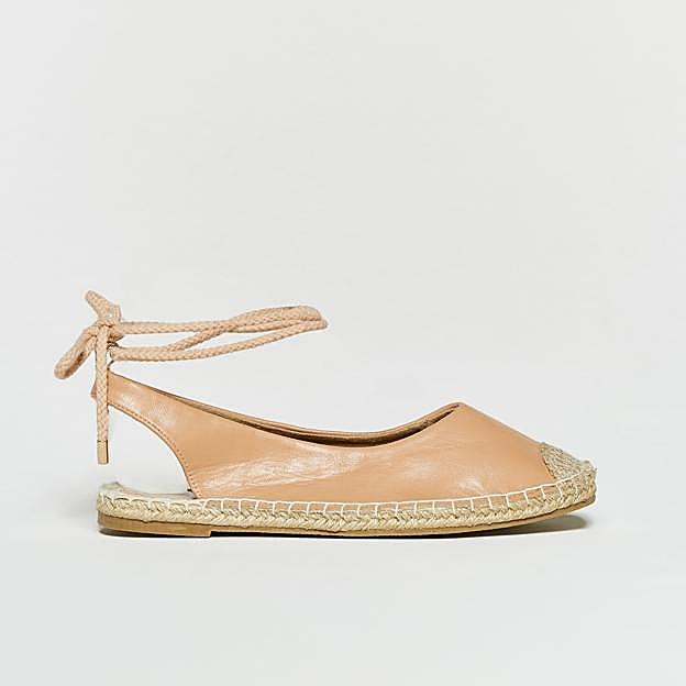 Para alargar el buen tiempo, tenemos que fichar sí o sí estas alpargatas destalonadas con la punta cerrada en color nude que van atadas a la pierna con cordones. Ideales para llevar con vaqueros en los días de otoño en los que aún brille el sol. Y lo mejor de lo mejor... ¡que solo cuestan 16,99 euros.