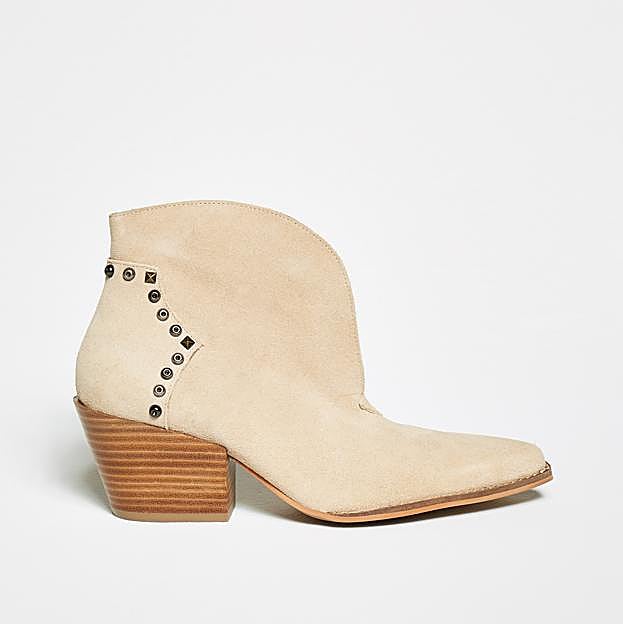 Para looks todoterreno, estos botines de piel tipo cowboy en color beige con detalle de tachuelas no te fallarán. Son perfectos para estrenar ya mismo y alargar su uso hasta el final del invierno. Hazte con ellos en la web de Sfera por 59,99 euros.