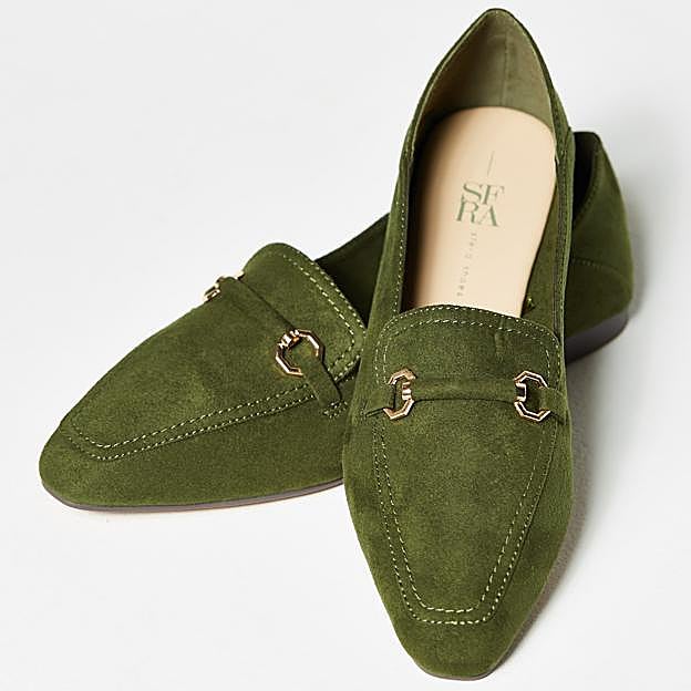 Sin terminar la lista no podemos dejar de lado estos mocasines con tejido de serraje y detalle de hebillas doradas en la parte delantera. Nos encanta su color verde caqui, uno de los tonos protagonistas del otoño, para combinar con estampados y colores lisos a juego.