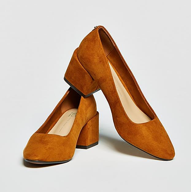Para elevar la altura y sobrevivir un día completo de oficina, estos zapatos de tacón bajo de Sfera te van a solucionar la vida. El tacón es bajo, cuadrado y súper cómodo, y la punta va redondeada. Están disponibles en color camel, pero también en negro. Arreglarán cualquier vaquero y resultarán ideales con todo tipo de vestidos y faldas. Cuestan 25,99 euros.