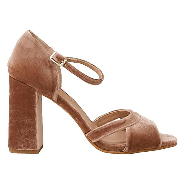 Son muchas las que han elegido esta firma para completar sus looks de invitada -incluso el de novias-. Ganzitos tiene a la venta calzado fabricado 100% en España de forma artesanal y con materiales de primera calidad. Y diseños como este de terciopelo con tacón ancho tienen el piso flexible y antideslizante con el certificado «Hand Made in Spain». Precio: 159 euros.