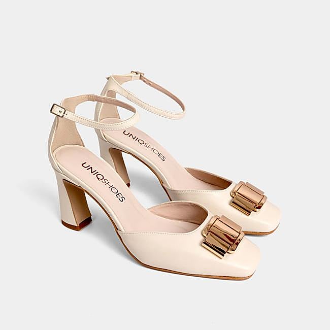 Estos zapatos de Uniqshoes son perfectos para novias que busquen algo diferente o zapatos perfectos para ir a la oficina. Su punta cuadrada y tacón geométrico hacen de el un zapato precioso y muy original con el que marcar la diferencia. Se pueden modificar y adaptar al gusto y estilo. Precio: 200 euros.
