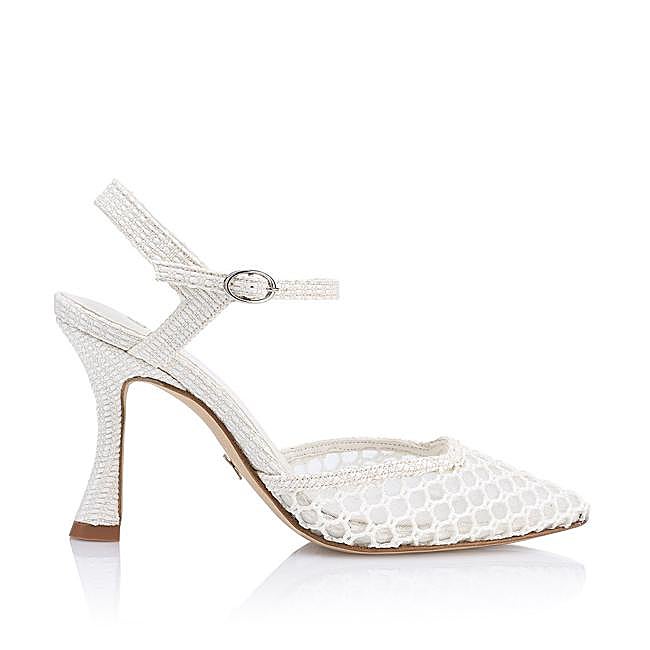 Artic Sky de Just Ene es la elegancia hecha movimiento. Su delicada rejilla, con un diseño etéreo, envuelve el pie como un susurro, dejando entrever destellos de piel. Cada hilo trenzado es un eco de artesanía y delicadeza y el tacón curvado, de silueta fluida, eleva cada paso con gracia. Precio: 365 euros.