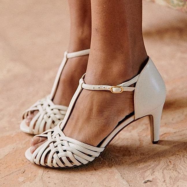Estos zapatos de Sézane que recuerdan a los de bailes de salón son ideales para esas novias románticas amantes de lo retro. Con un tacón medio muy cómodo y un diseño de tiras entrelazadas hechas a mano en Italia, son unas sandalias diferentes y muy especiales. Precio: 160 euros.