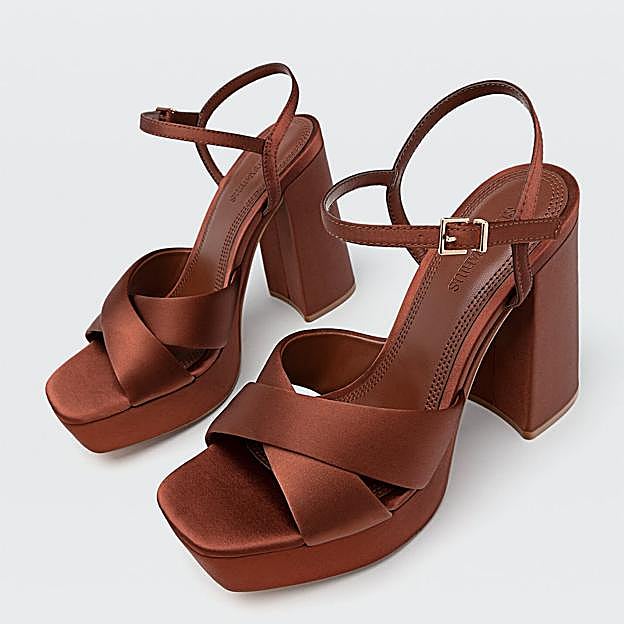 Para las amantes de las plataformas, este calzado será tu favorito. Son unas sandalias de tacón disponibles en Stradivarius que cuentan con un tejido satinado muy sofisticado. Además de la plataforma que ayuda a dar estabilidad al pie, cuenta con un cierre en el tobillo para ir completamente cómodas. La altura del tacón es de 10,5 cm y tiene un precio de 35,99 euros.