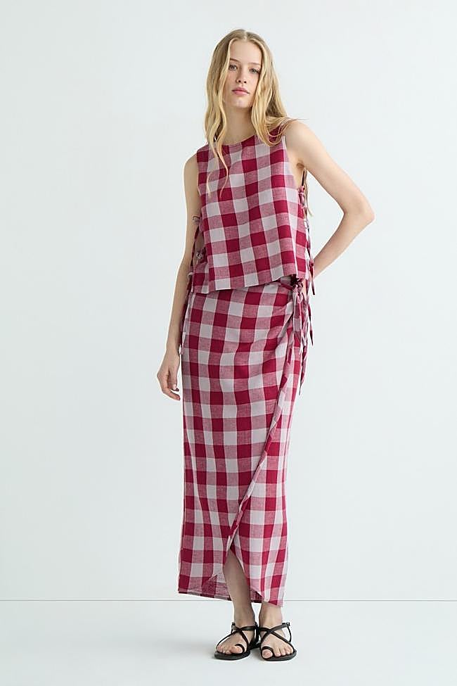 Conjunto con falda pareo con nudo (17 euros) y blusa a juego sin mangas (16 euros).