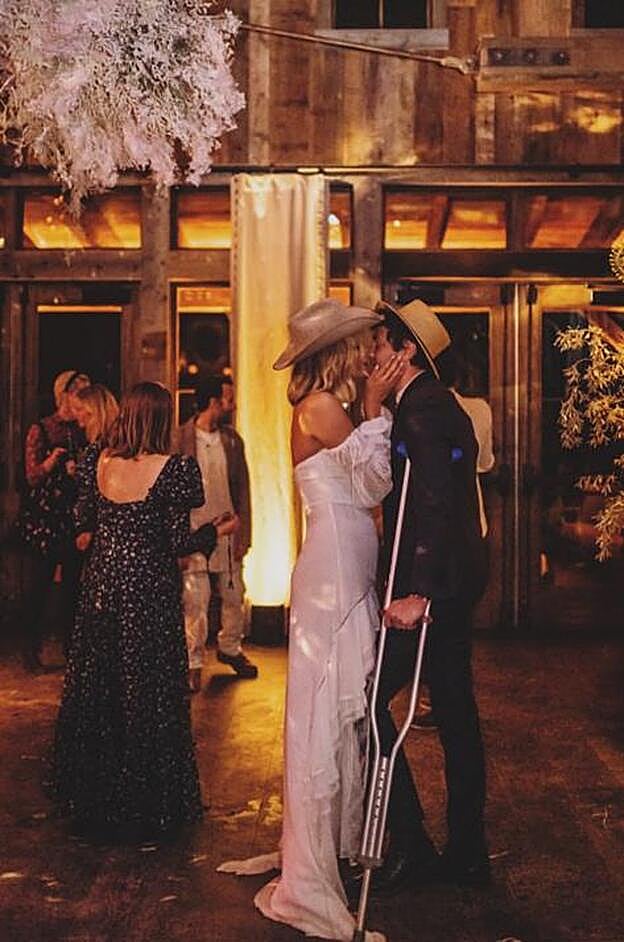 La modelo y su marido ambientaron toda la celebración con una estética 'country', y como no hay dos sin tres, Karlie Kloss terminó la fiesta de su boda con un tercer vestido de novia, también con escote 'off the shoulders', detalles de plumetti en mangas y falda con volantes, que remató con un sombrero 'cowboy'.