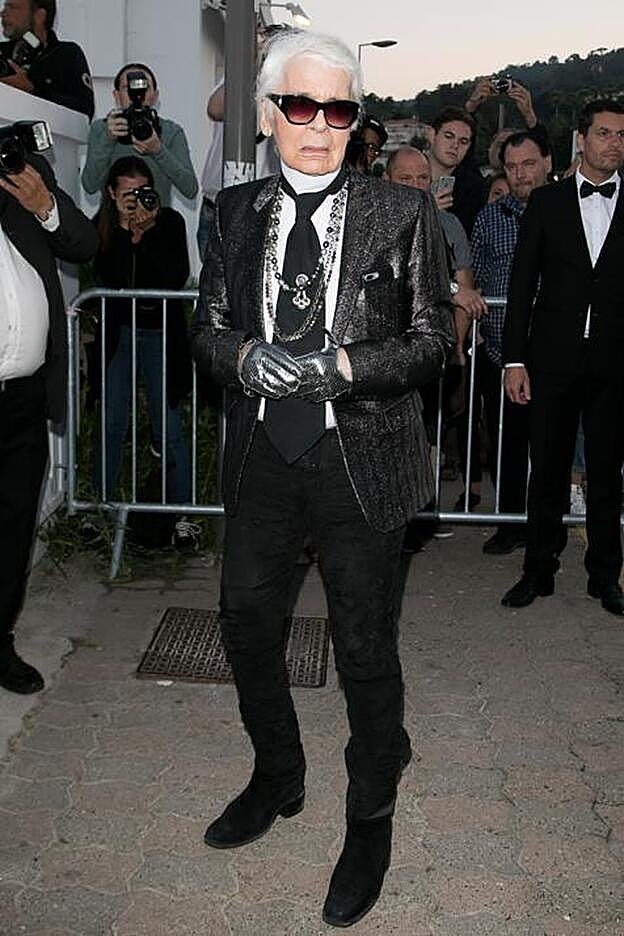 Lo que no cabe la menor duda es que, si la moda es el nuevo rock´n´roll (como se empeñaban a decir las revistas de tendencias de principios de los dosmil, con la llegada de Slimane), él es, ha sido y será su máxima estrella. Un icono en sí mismo. Reconocible como imagen al minuto. Una de sus frases más icónicas ha sido de siempre ese “a mí no me interesan las ideas, me interesa el look”. Y francamente, la consecución de uno propio fue algo que le costó décadas. Porque el bastante gordito Lagerfeld de los años noventa, que ya usaba gafas de sol (pero no tan oscuras) y también llevaba un pequeño abanico de hombre a todas partes, y algún grueso anillo en sus manos, a modo de solitario, sufrió un cambio radical en los dosmil. Inspirado, como él mismo reconocía, en la estética y silueta asumida y potenciada por uno de sus más ilustres protegidos: Hedi Slimane. “Adelgacé doscientas libras para embutirme en uno de sus pantalones”, llegó a confesar. Efectivamente, el pantalón pitillo y la bota rockera fueron un robo en toda regla a la estética juvenil que venía a imponer Slimane. Otra cosa fue su chaqueta, blazier y esos grandes cuellos y puños que él puso por distinción propia. Luego también la proliferación de anillos e incluso los guantes de motorista. Todo por crear una imagen que luego sería un auténtico icono y le reportaría todo tipo de beneficios: reproducida tal cual, o en el modo de osito de peluche o aquel Lagerfeldmouse que triunfó en las redes. “Soy como una caricatura de mí mismo, y me gusta. Es como una máscara. Para mí, el Carnaval de Venecia dura todo el año”.