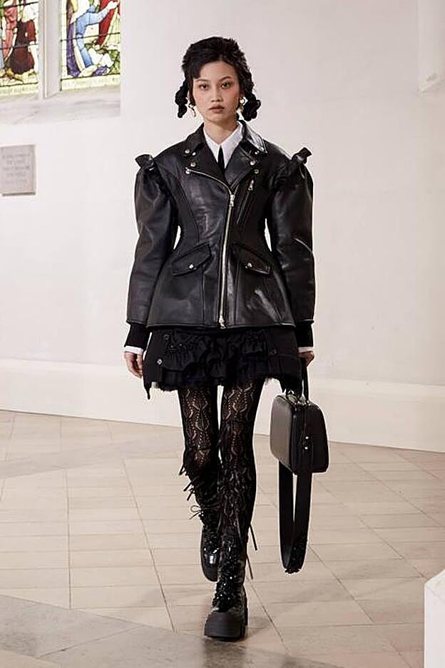 La confección de las cazadoras de cuero tiene una marcada factura escultural que, como ella misma aseguraba antes de la presentación, “ofrecen una función protectora, enfocada desde un punto de vista práctico y pensado para mujeres rebeldes y frágiles”.