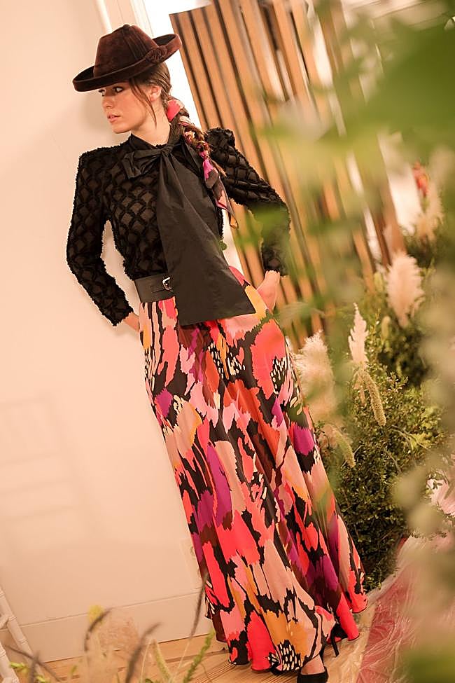 La ambientación ha ayudado a potenciar la idea que tenía Lola quería trasmitir: la colección Raíces supone un viaje hacia los orígenes de Panambi, un homenaje a la feminidad, la elegancia atemporal y la riqueza de los tejidos, que se reinterpretan en clave contemporánea. Volúmenes orgánicos, siluetas fluidas y una paleta cromática cálida marcaron la narrativa visual de esta propuesta para el próximo otoño/invierno.