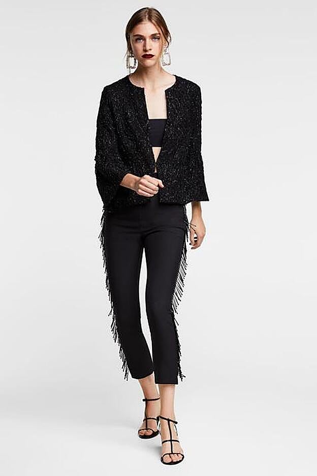 Este pantalón negro que los flecos a lo largo es ideal para cualquier evento nocturno. Con este pantalón ya no necesitas más en tu estilo, él se roba todo el protagonismo. Precio: 39,95 euros.