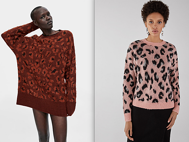 Nos ha gustado una opción más que consiguen llamar la atención pero no recurren a ninguna aplicación extra: los jerseys que recurren al estampado animal, probablemente la tendencia más dominante de esta temporada. El primero, de Zara, es un diseño largo y oversize que puede funcionar de vestido: el tono anaranjado del print de leopardo es genial (29,95 euros). El segundo, de Bershka, es uno de los pocos jerseys rosas con estampado salvaje que hemos encontrado: es genial (22,99 euros).