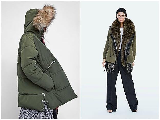 Así que sí, hemos buscado su versión 'low cost' y con oferta en Zara, y hemos encontrado dos alternativas de lo más deseables... y baratas. A la izquierda, una parka acolchado con capucha con pelo, que pasa de 69.95 a 49.99 euros en las rebajas; y a la derecha, un original abrigo desmontable con cuello de èlo y detalle en tartán, rebajado de 99.95 a 69.99 euros.