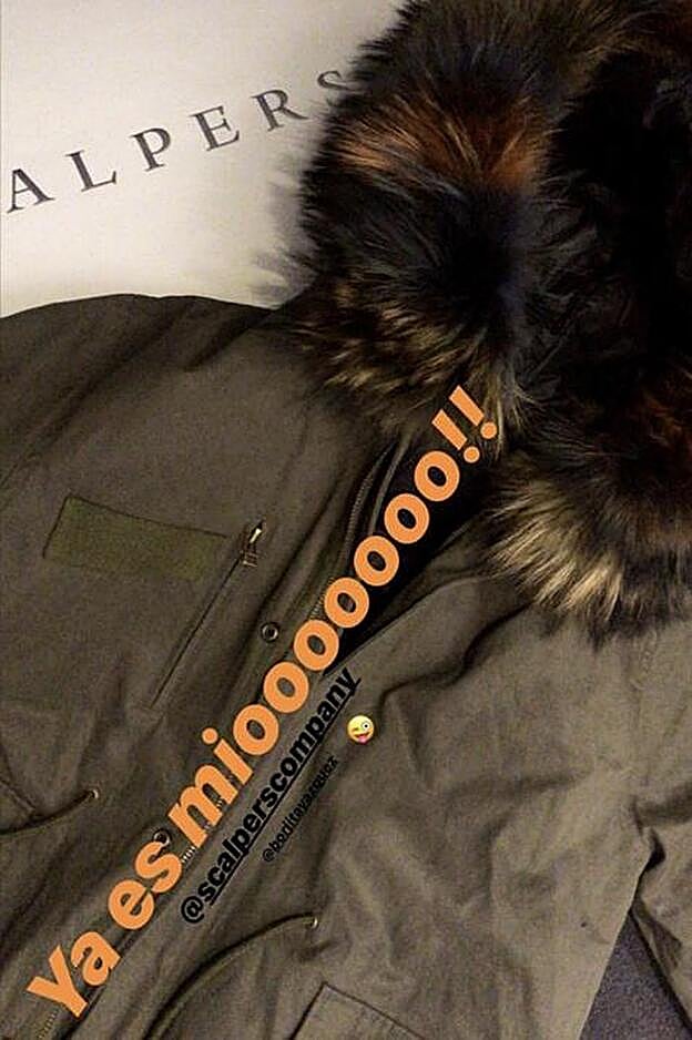 La diseñadora nos ha mostrado a través de sus Stories de Instagram su jornada de rebajas en Scalpers Woman (empresa que, por cierto, hace meses entró en el accionariado de la marca de moda de Vicky Martín Berrocal), donde había ofertas de hasta un -40%, pero al final, la diseñadora mostró su compra y resultó que había 'picado' con una maravillosa parka verde con capucha con pelo... que no tiene descuento en la Web de la firma.