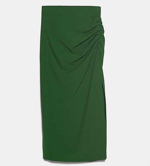 Si te has enamorado del color, hemos selccionado una falda en verde botella para que puedas reproducir (más o menos) el estilismo. ¿Lo mejor? Es 'low cost', la puedes conseguir 35,99€ y es perfecta para combinar con una camiseta blanca, unos salones e incluso, con unas sneakers para la oficina.