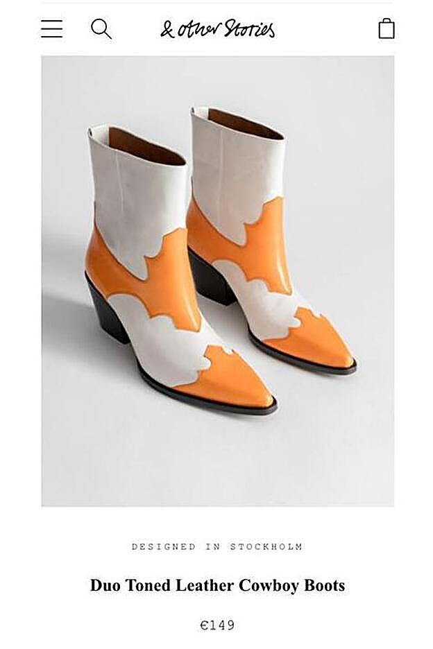Dos looks completamente diferentes pero con un denominador: las botas cowboy en blanco y naranja de &Other Stories, un modelo en piel de la temporada pasada que costaba 149 euros y que, por supuesto, está agotadísimo.