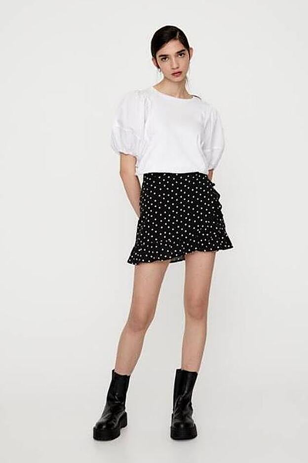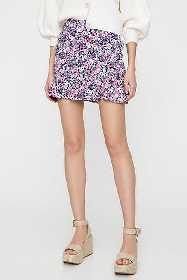 Se trata de una minifalda de estilo pareo con un volante ideal que hay disponible en tres estampados y colores diferentes. Un modelo que acaba de llegar a tienda y que ya está agotado en varias tallas y no es para menos. Y es que además de estar disponible en las tres tendencias de la primavera, cuesta tan solo 12,99 euros.
