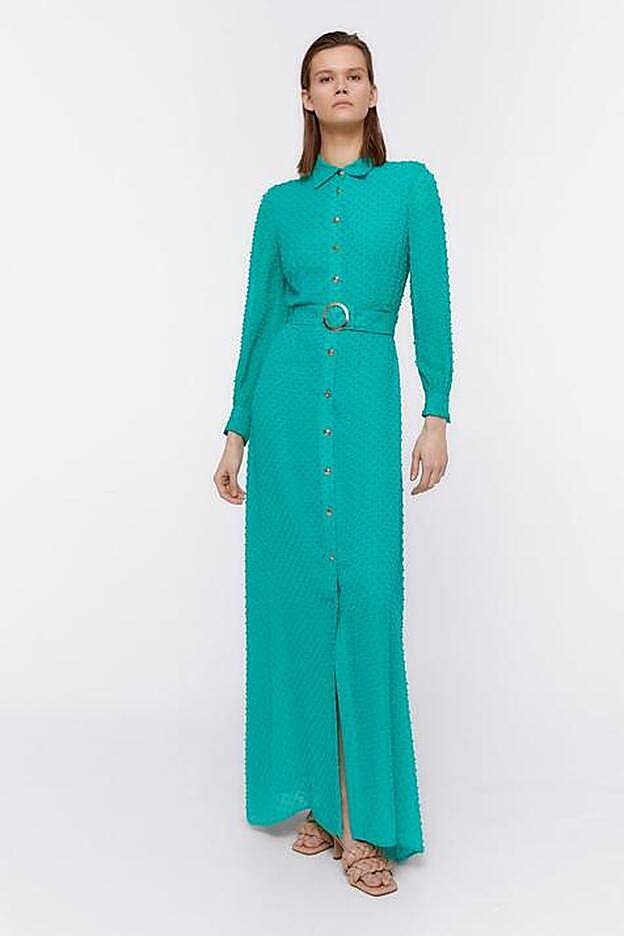 De manga larga, ajustado al cuerpo y con mini botones dorados, es ideal para una noche de chicas o para un domingo al sol, ya sea con Converse o zapato plano. La clave está en no reservarlo solo para ocasiones especiales. Aunque si lo que quieres es un vestido que ponerte para una boda y luego, reutilizarlo en tu vida diaria... ¡bingo! Este es el perfecto. Con un cinturón que marca silueta y un tejido de lo más gustoso, se presenta como EL vestido de la primavera.
