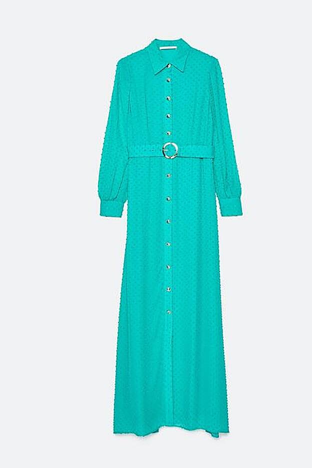 El otro día, hacía referencia a una manía que con la cuarentena, parece que se ha agudizado: los pantallazos. Mi móvil está lleno de fotos de toda índole. Cremas faciales (que falta me harán, ya que mi cutis se ha vuelto loco con el confinamiento), vestidos y accesorios varios con los que me quiero hacer una vez que podamos salir a la calle de nuevo. Uno de esos pantallazos -también en favoritos, por si las moscas- es muy especial. ¿Por qué? Se trata de un vestido de plumetti color aguamarina, largo y con cinturón de Uterqüe que se ha ganado mi admiración -y deseo, mucho-.