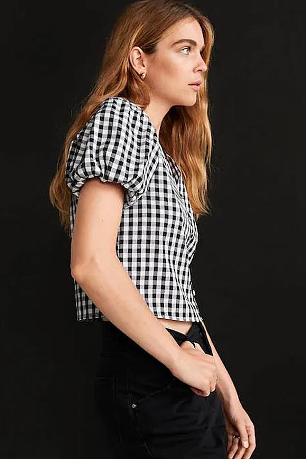 Tal y como hemos podido comprobar en su última publicación de Instagram, la influencer ha recuperado un top en cuadro vichy negro de Zara. Y aunque como ella misma ha confesado en sus stories, pertenece a otra temporada, y ya no podemos comprarlo, hemos encontrado una blusa ideal para copiar su bonito look, en el que también lucía unos jeans.