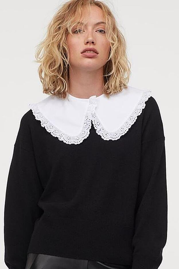 Llego esta primavera y tuvo tanto éxito que para la temporada otoño/invierno se ha convertido en una de las tendencias más buscadas. Hablamos del cuello bobo o de bebé en formato XXL que está protagonizando muchas de las prendas de las nuevas colecciones y más que fácil encontrar en cualquier tienda una prenda con la que unirte a esta moda. Hace unos días encontrábamos estos dos jerséis ideales que llevan el cuello bobo y en Sfera la camisa blanca que hará tus looks espectaculares. Sin embargo, H&M ha encontrado la solución para que no te dejes todo tu presupuesto en este tipo de prendas sacando a la venta el cuello por separado.