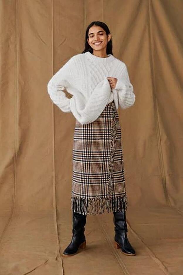 La de Mango es un modelo de cuadros en tonos marrones que cuesta 49,99 euros y que desde la firma proponen combinarla con jersey y botas a juego. ¿No te convence? Pues atenta porque lo tiene todo. Un corte muy favorecedor por ese midi ajustado que sienta de maravilla. Un estampado tendencia y con colores aptos para la temporada otoño-invierno. Y un tejido muy, pero que muy calentito.