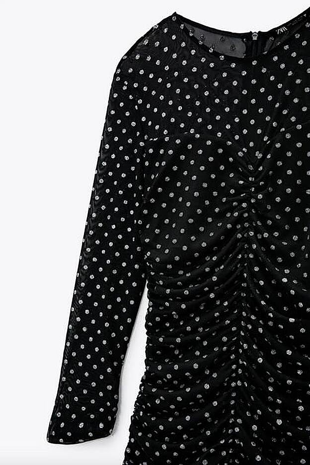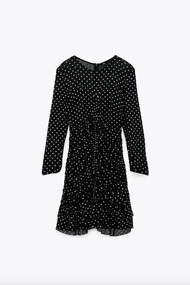 Con lunares brillantes y volantes, tres de las tendencias estrella del año que termina, este vestido con detalle de frunces elásticos puede ser un excelente aliado a la hora de presumir de figura.