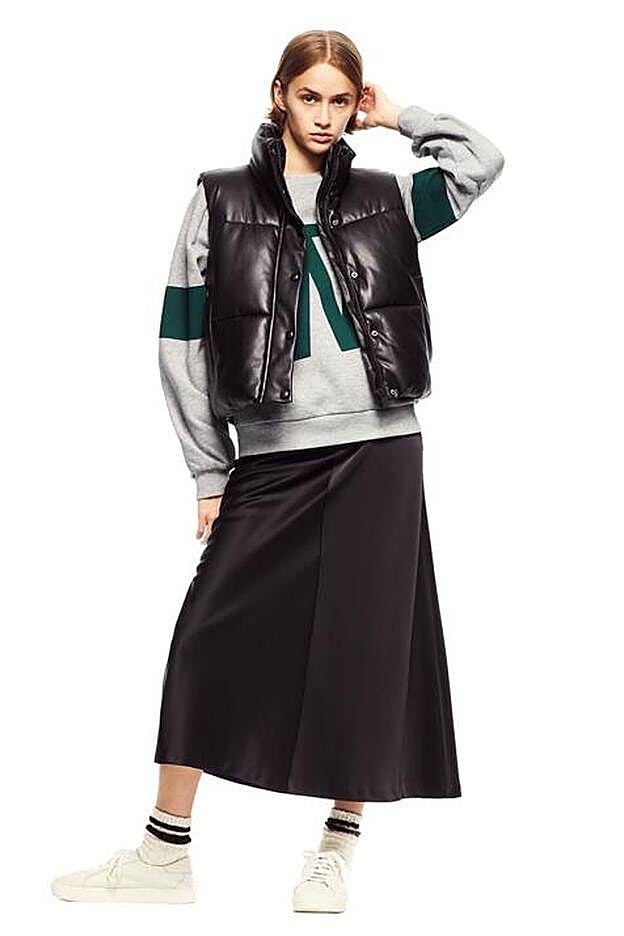 Otra de las propuestas que nos confirman que este repertorio es tan versátil como cómodo es la combinación con un chaleco acolchado y una falda midi de vuelo. Un guiño a otra de las décadas que más expectación generan esta temporada, la de los 50.