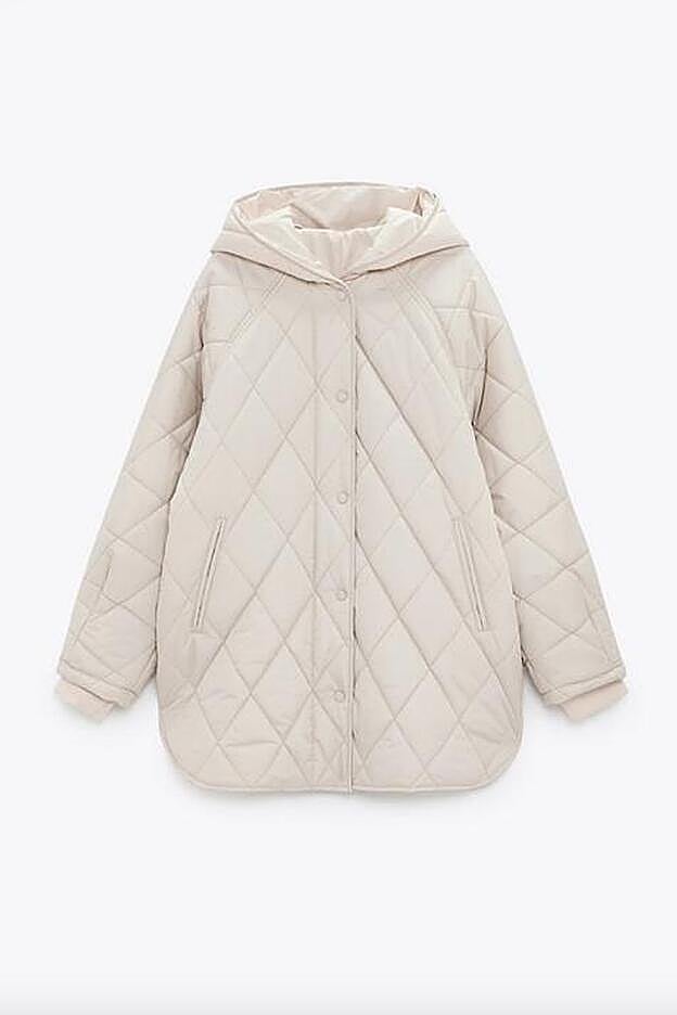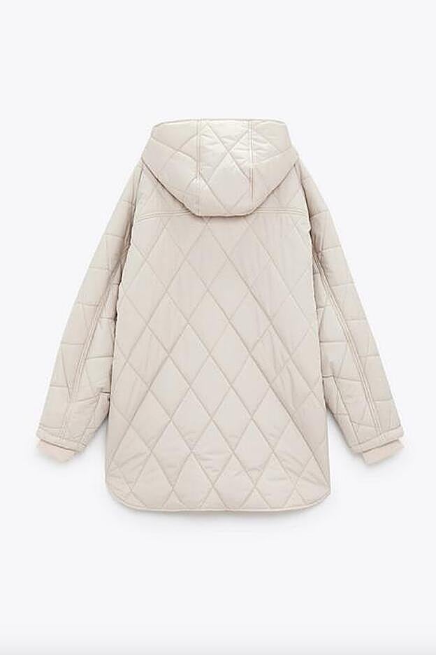 El abrigo acolchado oversize de Zara viene con bajo redondeado y aberturas laterales y el cierre frontal es con botones a presión. Algo que nos permite jugar con el diseño de la prenda como en el abrigo de H&M, que venía con cremallera bidireccional.