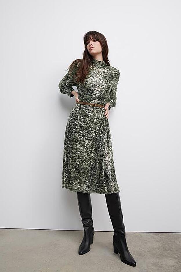 El de la foto también es de Zara, tiene las mangas largas y abullonadas, cuello alto y un efecto brillante gracias a las lentejuelas bordadas. El contrapunto perfecto para ligar la funcionalidad de la parka y la elegancia de las flores. Cuesta 59,95 euros y se puede encontrar en tallas XS a la L.