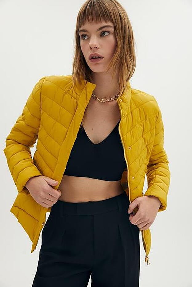 En lo que se refiere a la chaqueta, Sfera ha sumado el color mostaza a sus propuestas en una prenda de manga larga, con cuello chimenea, bolsillos laterales con cremallera y cierre frontal de cremallera a tono oculta por tapeta con clip.