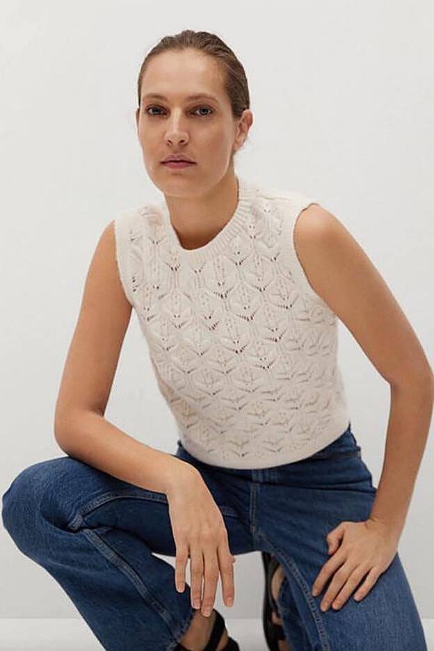 Esta bonita prenda sin mangas que también podemos ponernos sin el cuello, apostando por una prenda totalmente lisa en crudo, tiene un precio de 29,99 euros y está disponible entre las tallas XS y XL.