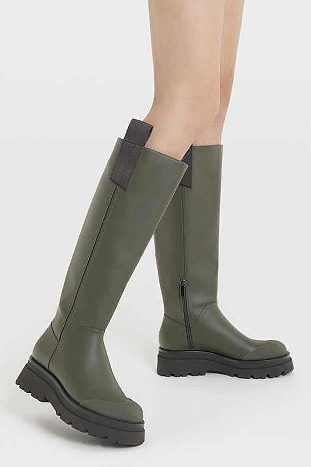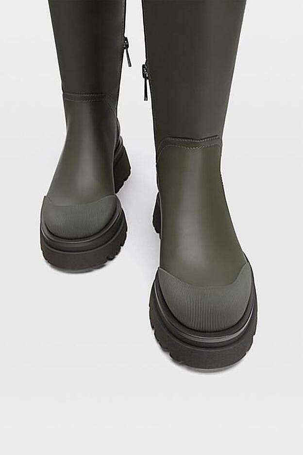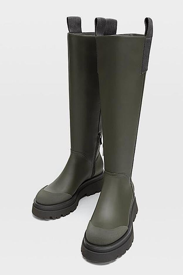 En color caqui y con suela plana track en negro, son la elección perfecta para esos días de lluvia en los que no quieres renunciar a tus mejores estilismos, tanto si apuestas por faldas o vestidos como si prefieres ponerte unos pantalones de corte slim.