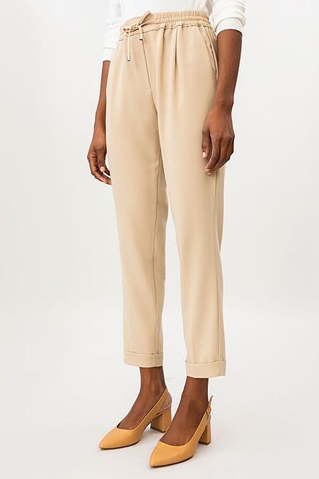 En diseño liso podemos encontrar estos jogger de vestir en beige y en negro. Dos propuestas ideales para combinarlas con todo, que viene con cintura elástica con cordón, bajos recogidos y bolsillos laterales.