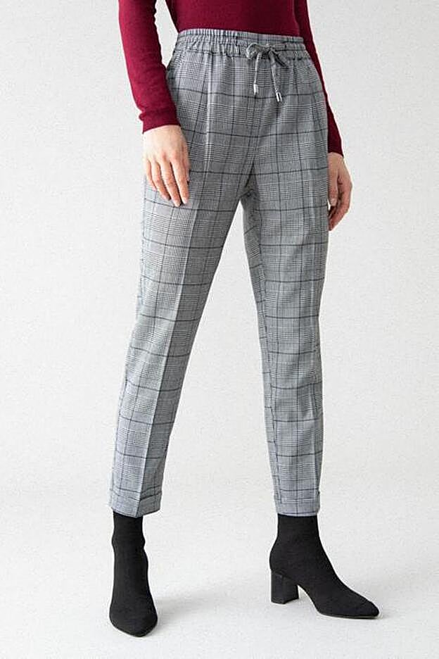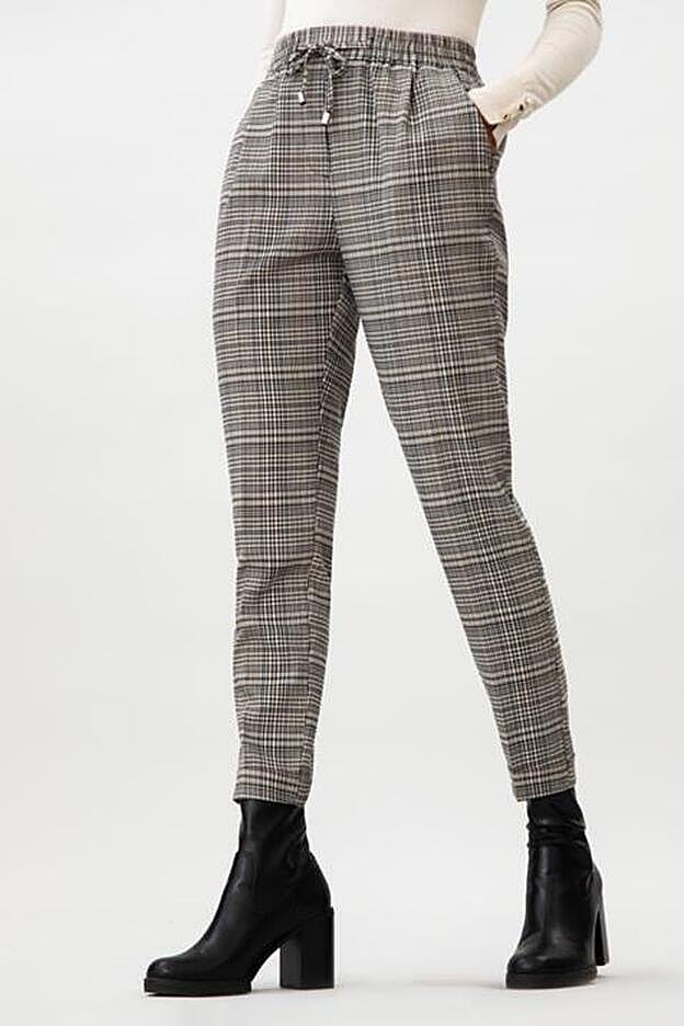 En diseño estampado también encontramos dos propuestas diferentes, una de ellas en color gris con print de príncipe de Gales en negro y otra en tonos grises y blancos. Tiene la cintura elástica con cordón acabado en detalle metalizado, bolsillos laterales y bajos recogidos.