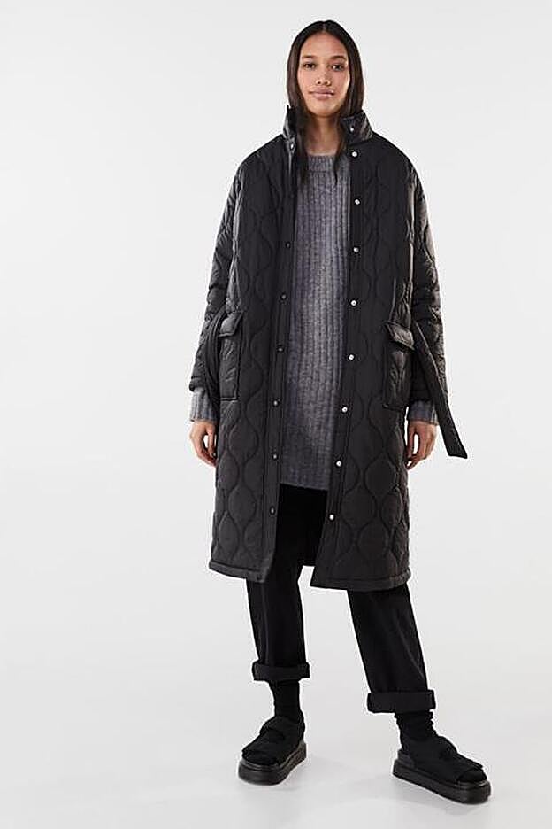 Si lo tuyo son los colores oscuros y, aunque la primavera pide tonalidades más claras y pasteles, eres fiel al negro, en Bershka hay una opción para ti. Tiene el cuello subido, cierre de botones metálicos y un cinturón con el que marcar la silueta. Cuesta también 35,99 euros y promete agotarse tan rápido como la gabardina original de Paula Echevarría.