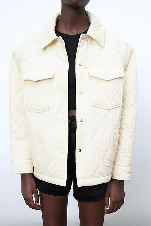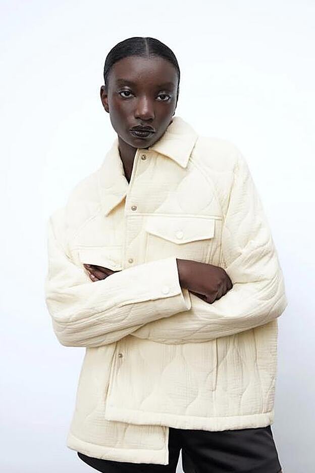En Zara han apostado por el color crudo para esta chaqueta confeccionada con al menos un 50% de algodón orgánico y con relleno de poliéster reciclado. Con cuello de solapa y manga larga acabada en puño con botón, viene con cierre de botones a tono en el frontal.