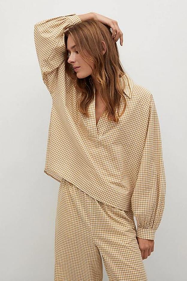 En color mostaza y con estampado de cuadro Vichy en mini, está compuesto por una blusa y un pantalón de diseño culotte que inmediatamente nos ha llevado a imaginar nuestros looks más relajados y primaverales. Una propuesta tan cómoda como estilosa que vamos a poder ponernos con nuestras zapatillas favoritas o nuestras nuevas sandalias fetiche.