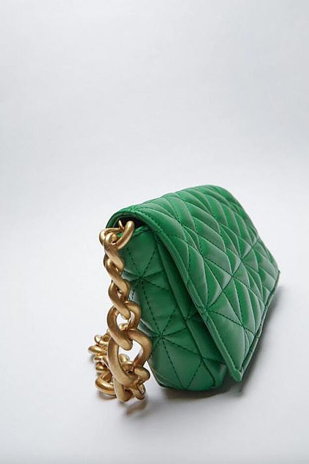 En verde intenso y color natural, la firma de Inditex sigue apostando por la tendencia del acolchado para su colección de primavera. Pero la suma a otras de las protagonistas más importantes de los accesorios y las prendas en las últimas semanas, las cadenas. Un matrimonio lleno de estilo y personalidad que seguro que ya te imaginas completando tus looks con vaqueros y sandalias de tacón o tu vestido mini favorito.