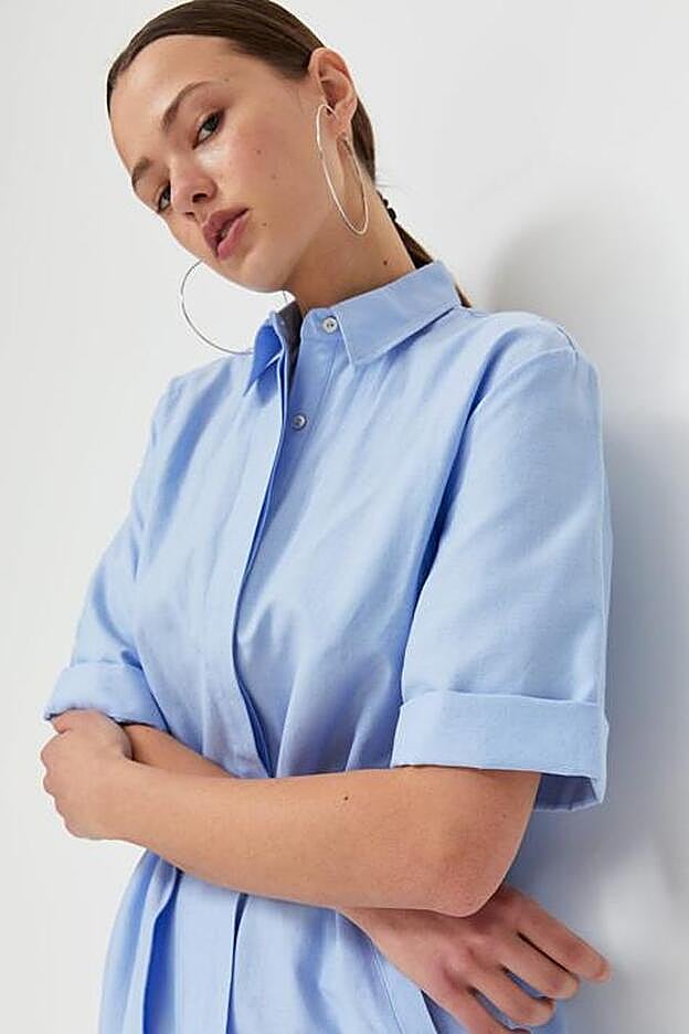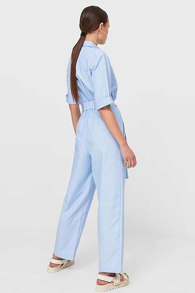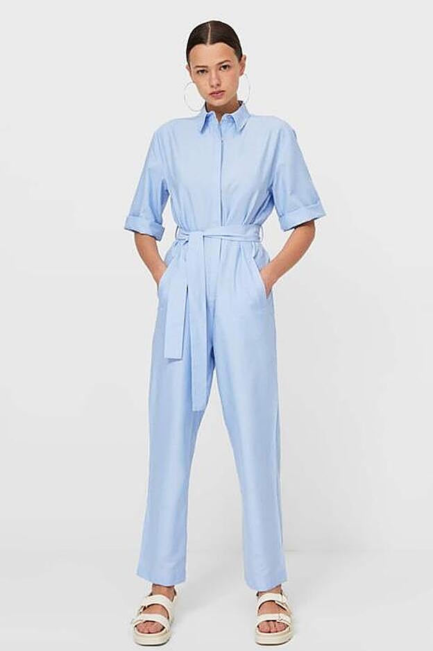 Stradivarius ha decidido llevar un poco más lejos a la conocida camisa Oxford, con su azul pastel primaveral y su diseño elegante para convertirla en un mono largo de manga tres cuartos que a primera vista sorprende pero también enamora. Porque su color es ideal para la nueva temporada, y su diseño es pura elegancia, una propuesta con la que vas a sorprender y conseguir un look impecable.