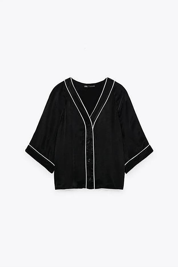 Con cierre frontal de botones a tono en negro y bajo cropped, es una camisa perfecta para darle un toque relajado pero elegante a cualquier look. Está disponible entre las tallas XS y XXL por 22,95 euros.