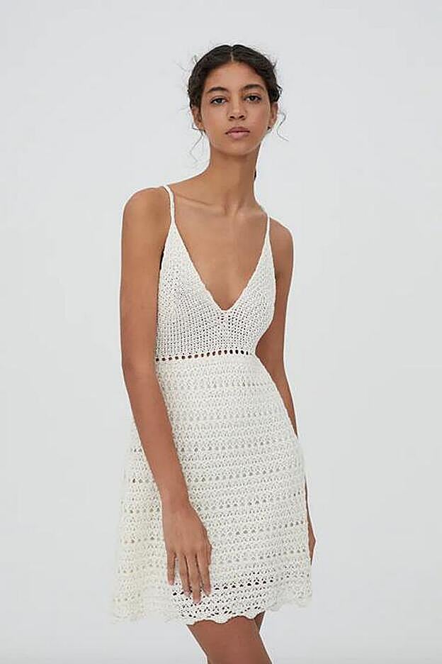 Otra de las propuestas que apuestan por una de las tendencias del momento es este vestido mini crochet con escote de pico y tirantes finos sobre los hombros y uno en la espalda.