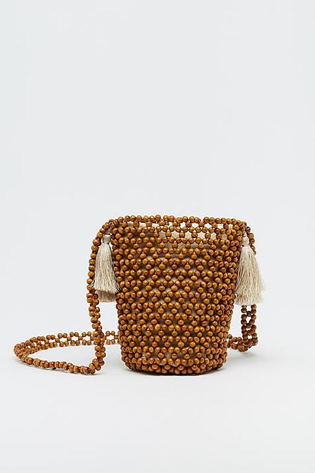 La segunda propuesta viene es un bolso de saco con cuentas en el cuerpo y el asa doble en color marrón. Con saco interno en beige, acabado en borlas de flecos que sobresalen en los laterales, también tiene cierre interior en el saco. Podemos comprarlo por 16,99 euros.
