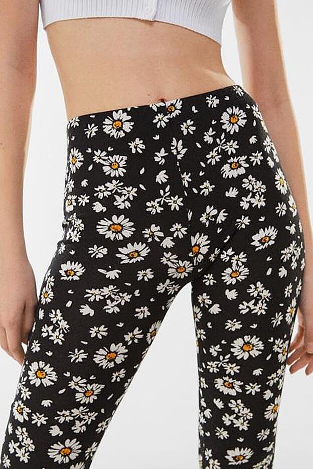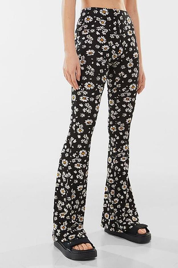 En color negro, con estampado de margaritas en blanco y amarillo, son pura primavera y tienen un aire hippie muy favorecedor perfecto para apostar por un total look o por un estilismo boho con cárdigan largo y bolso denim con flecos. Lo lleves con lo que lo lleves vas a conseguir un estilismo impecable, porque lo tiene todo para realzar tu figura.