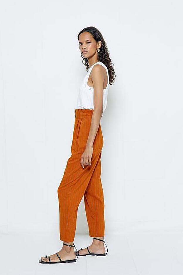 Los pantalones vienen con la siempre favorecedora cintura paperbag, con perneras acabadas en el tobillo y un ligero diseño flare. La americana tiene un precio de 49,99 euros y podemos encontrarla en las tallas S y M, mientras que el pantalón cuesta 29,99 euros y está disponible entre las tallas 36 y 42.