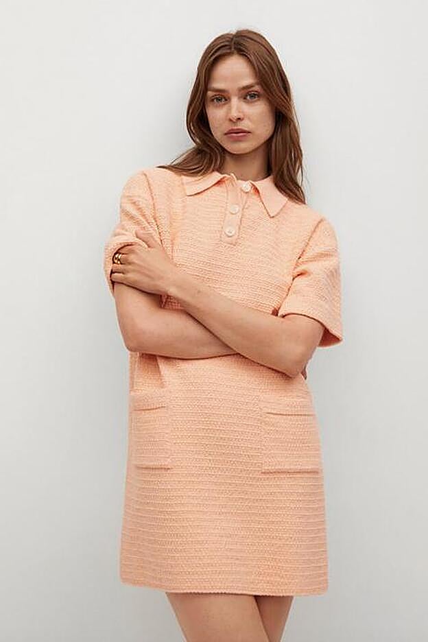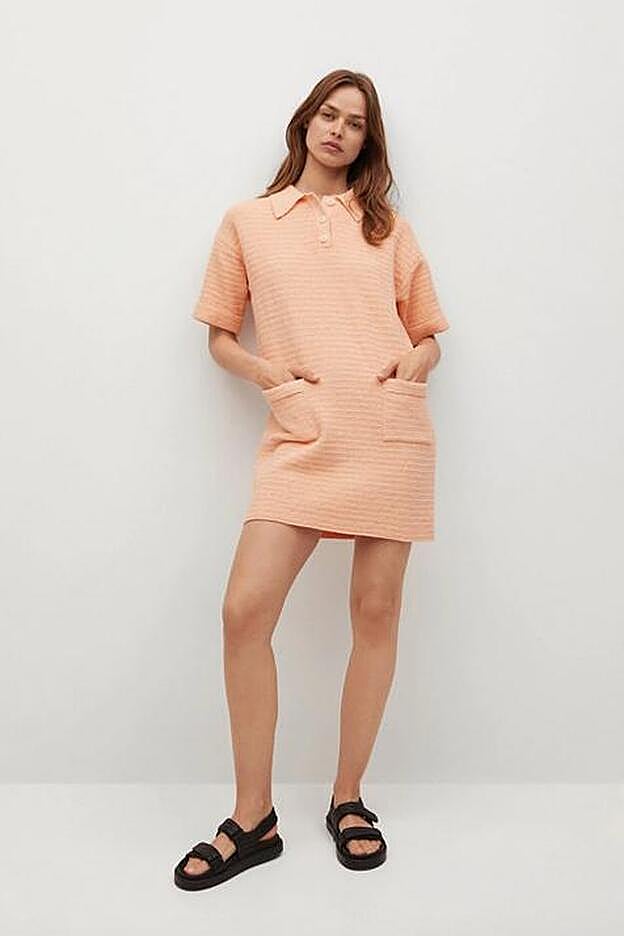 Y para los días más calurosos de la temporada Mango ha lanzado este vestido de punto en color pomelo, con diseño corto por encima de la rodilla.
