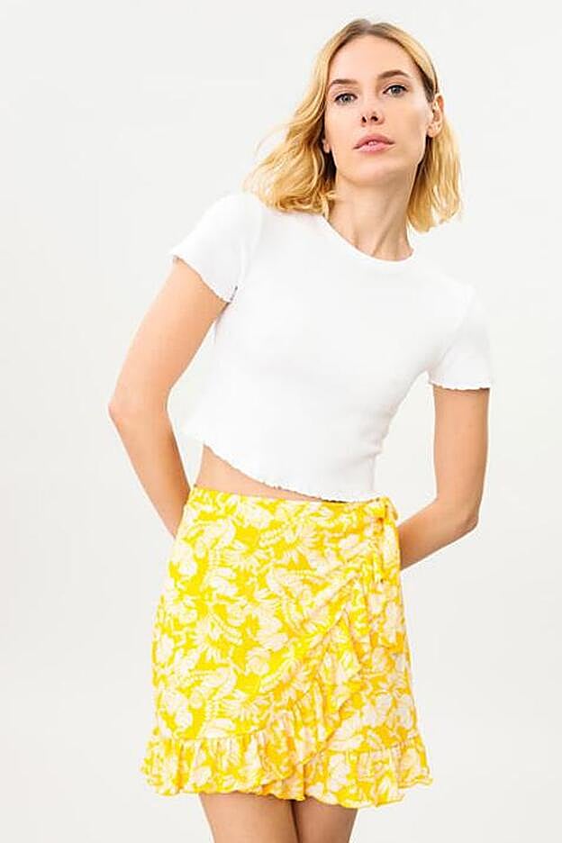 Entre las faldas de las que más se está hablando en este comienzo de la primavera están la de diseño pareo que ya nos hace soñar con el verano y las minifaldas con las que te tienes que hacer antes de que se agoten. Pero en Lefties han optado por unir en una sola prenda los mayores éxitos en lo que a esta prenda se refiere y han lanzado la falda pareo en versión mini que es ideal para nuestros looks con sandalias de tacón y plataforma.