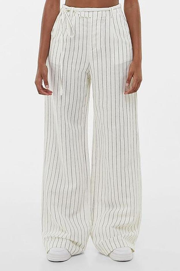 El pantalón a juego es de pernera ancha y viene con cierre de cremallera, botón y gancho ocultos y cordón de cierre en la cintura a tono. Podemos encontrarlo entre las tallas XS y XL por 25,99 euros.