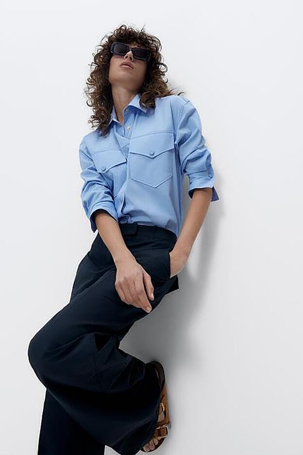 Para esos looks de aires informales pero con estilo Uterqüe ha lanzado esta camisa confeccionada en popelín, con cuello clásico y abertura mediante tapeta frontal con snaps a tono engomados. Tiene canesú delantero y bolsillos de plastrón en la pechera, cuesta 69 euros y está disponible en las tallas S, M y L.